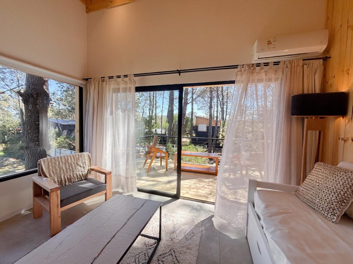 Luminosas suites a estrenar con cómoda sala de estar y amplios ventanales hacia el bosque de pinos.
